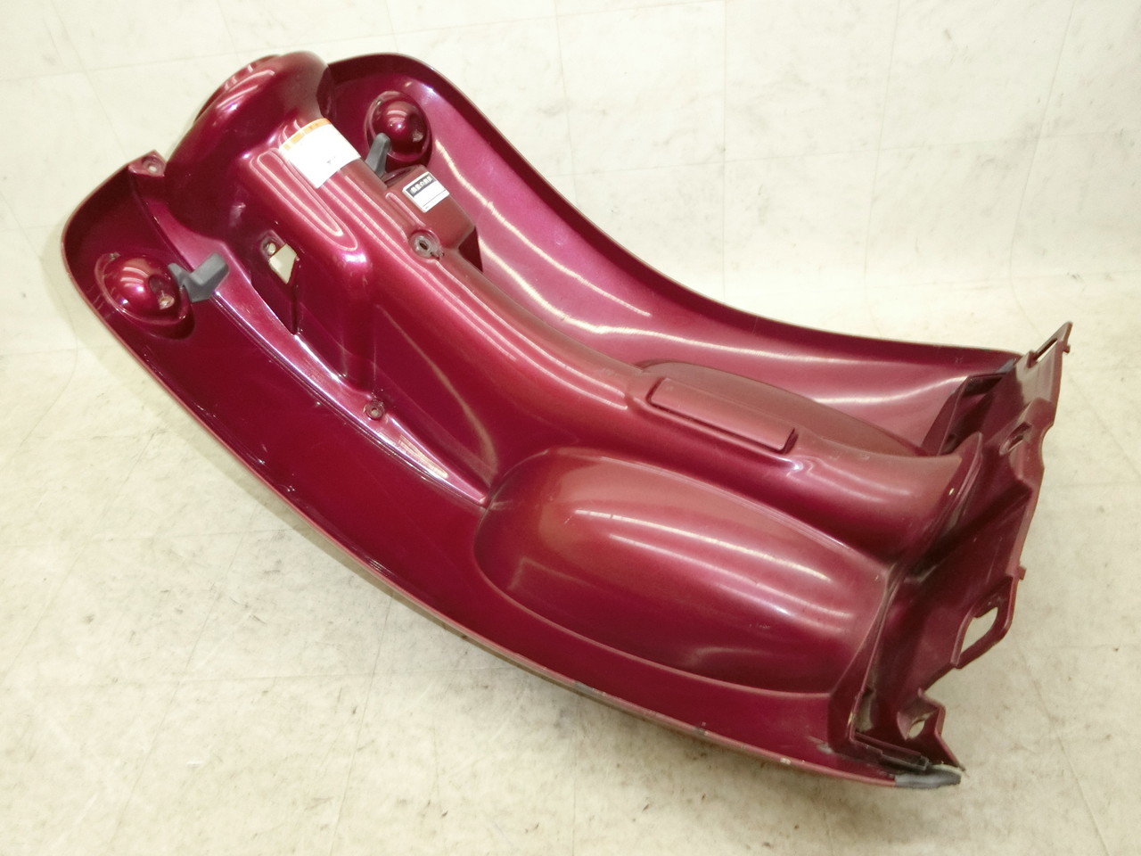 マルーン色 左右下部に削れ傷とクラックあります。