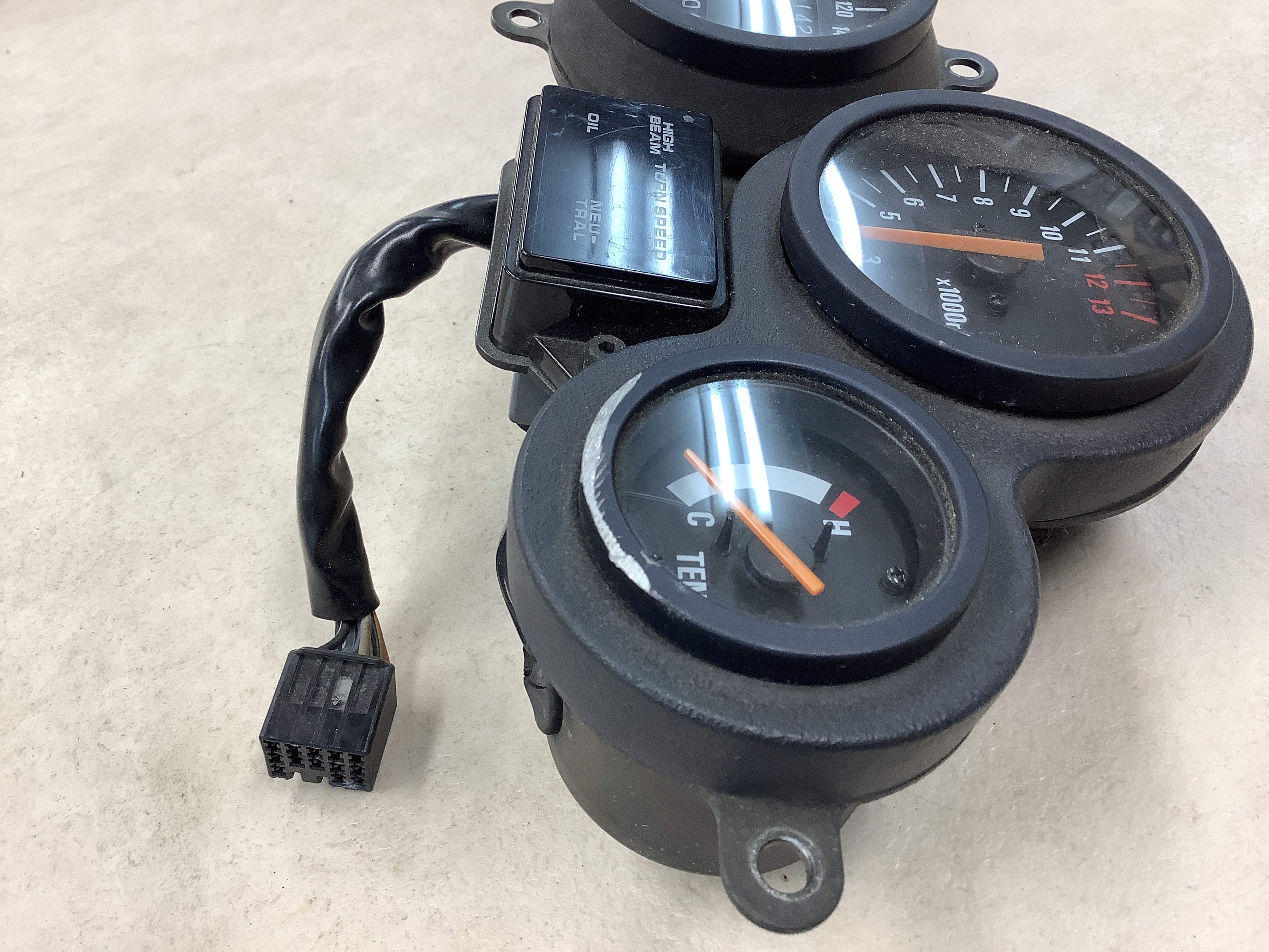 表示距離:11427km,レンズに割れありません,ハーネスの切れ無く、カプラー正常です,単体入庫の為、動作確認は一部のみです,スピードメーター上下動き30kmまでは確認済です,タコ・インジケーター・水温計は未確認です,ランプ等の点灯は未確認ですリム擦り傷あります。