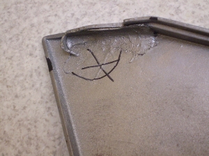 また中央下部にもひび割れが2ヶ所あります。(取り付けピン付近)
