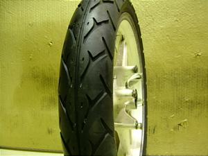 J17×2.50のS字断面の3本スポーク。 白アルミホイール。 リム耳にアルミサビあり。 パッドカスヨゴレついてます。 根気よく磨くかリペイントお勧めします。 曲り 大きなキズなし。 タイヤはダンロップの100/80-17の5分山 ヒビが入ってます。 「73105005」