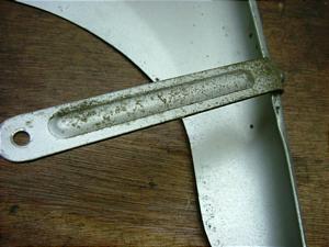 スチールプレス製カバーです。銀塗装で小サビありますが、大きな傷ありません。