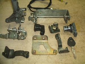 メインキーBOX、フロントトランク、ガソリンリッド、シートロックの4点セットでキーシャッターは欠落しています。シートロックは前後フックやワイヤー付です。各シリンダーは正常に作動し純正キーが1本附属します。