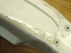 白塗装のフェンダーで割れやてんとうきずはありませんが色ハゲが多くリペイントしての使用がベストです。
