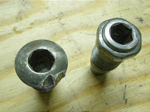 左側ボルトの頭に脱着時のハンマー傷有ますがヘキサゴン部分は損傷なくねじ山もシッカリしています。ピボット部分の磨耗もありません。