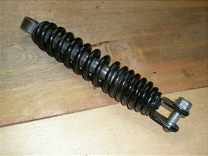 長さ295mm内寸255mm上下ボルト穴径各12mmのサスで錆多目です。スプリングもコーティングのハガレありますが傷や曲がりありません。オイルの漏れもなく荷重テストでも抜けは感じませんでした。下のブラケットは黒塗装してあります。