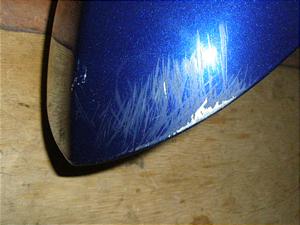 青メタリック塗装のパーツで前左にすり傷あり細かいスクラッチ傷もあります。割れや大きな傷なく爪折れもありません。色ツヤも良好です。