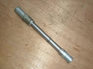 長さ220mm太さ15mmの傷錆の少ない曲がりのないシャフトでカーラー1個付です。袋ナットやねじ山に損傷ありません。