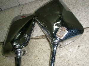 鏡面はキレイで、ステーに曲がりもありません。左右でメーカーが異なっているようです。