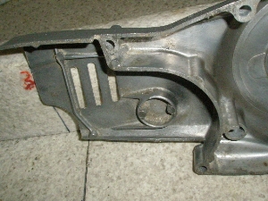 クランクケース左側カバーで、錆を落として銀塗装してあります。