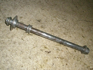長さ260mm太さ15mmのキズや曲がりのないシャフトで小サビ有りますが使用には支障なくカーラー2個付属します。ナットの角やねじ山に損傷ありません。