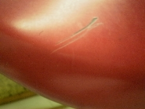 ツヤ落ちと変色あり、後部には浅いスクラッチ傷があります。