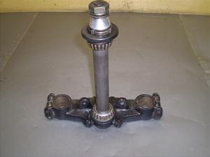 ブリッジ部全体に点錆がかなり有ります。上下ベアリングに固着は有りません。キャップ、中ナット、周り止めワッシャー、カール、ワッシャー、トップナット付き。シャフト径26.5mm。フォーク穴径36mm。