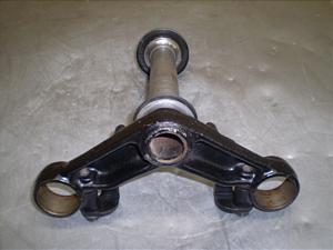 色はげ、汚れの少ないパーツです。しっかりしたパーツで、充分使用出来ます。上下ベアリング受け、キャップ・ナット・ワッシャー・トップナット付・シャフト径上24.5mm、下27mm、フォーク穴径33mm。