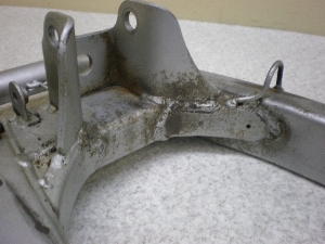 傷は少ない方です。錆は特にリンク取り付け部・キャリパー取り付け部にあります。