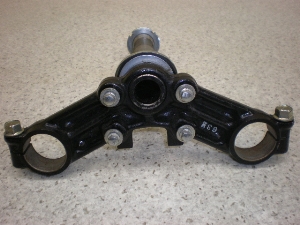 曲がりは有りません。ブリッジに錆、色はげはありませんが、フォーク穴に錆が少々あります。ステムシャフトの中間に錆、汚れ有ります。フォーク穴径37mm。シャフト径28mm。シャフト長約230mm。下レースに少々へこみ傷有ります。キャップ、中ナット、トップネジ付き。