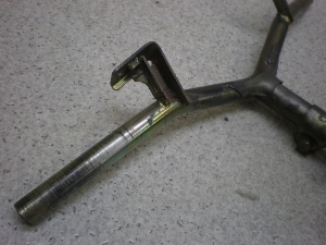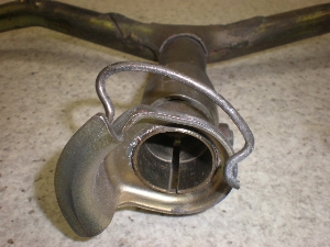目視による曲がりは有りません。全体に錆びたくさん有ります。グリップ部に回転傷、錆び有ります。ハンドル径22mm。ハンドル幅540mm。ステム穴径27mm。締めねじ付き。