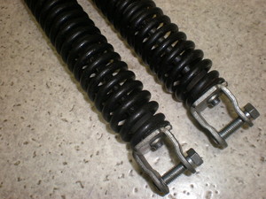 走行問題有りません。曲がりは有りません。上下取付部に少々錆び有ります。スプリングに色はげ少ないが、錆、汚れ有ります。上取付穴径10mm、取付幅21mm。下取付ボルト(径8mm)付き。取付内幅19mm。ボルト上空き16mm。上下ピッチ間300mm。
