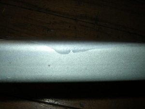 曲がりはなく問題なく取り付け出来ます。何ヶ所かタッチペンで補修した跡ありますが目立つ程でなくキレイです。