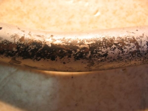 目視での曲りはありません。表面サビキツイです。目に付くので色を塗り直すなどの手を加えてください。取り付けも問題ありません。